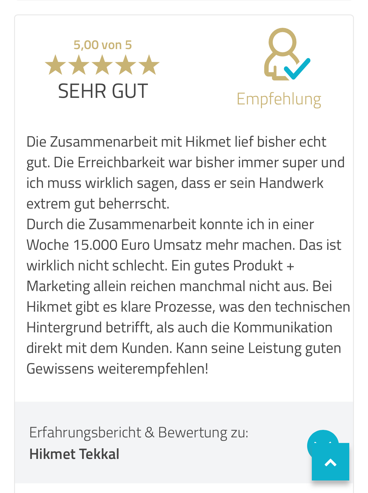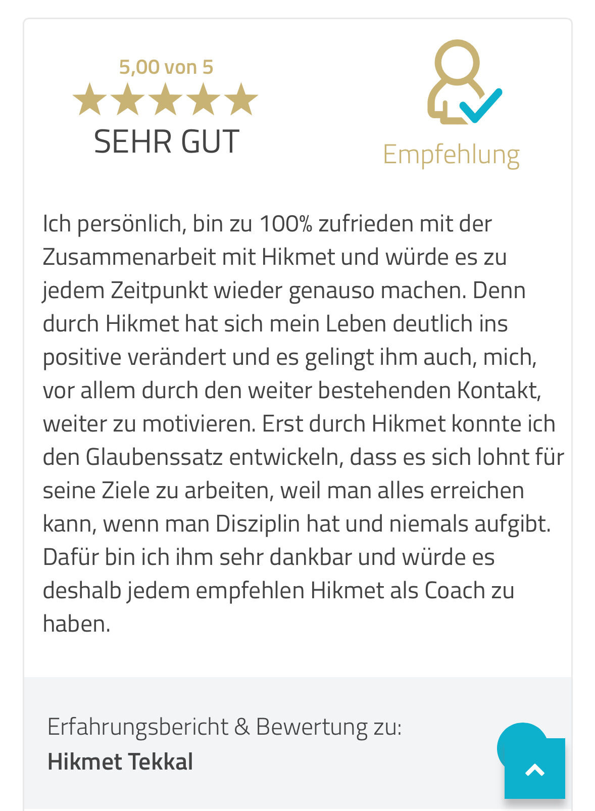 Klicke auf den Button, suche dir einen Termin aus, der dir am Besten passt. Es wird sich ein Experte aus meinem Team oder Hikmet persönlich bei dir melden, um herauszufinden, ob und wie wir dich am Besten unterstützen können.