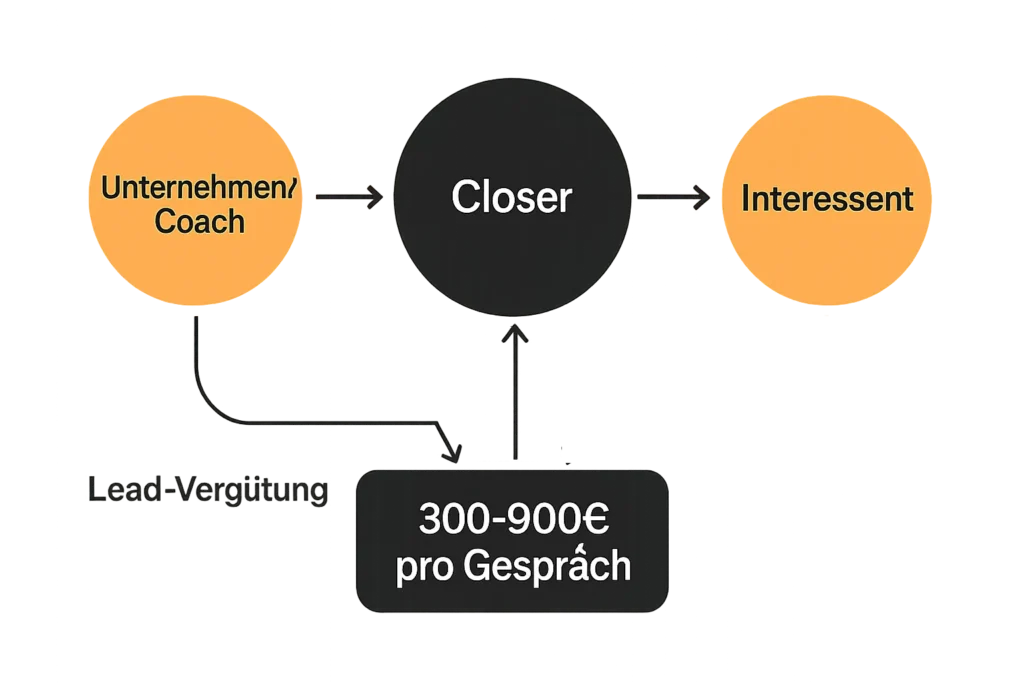 Das Besondere: Als Closer setzt du dich in ein bestehendes System. Unternehmen, Coaches und Dienstleister kümmern sich um die Kunden – du übernimmst nur die Gespräche.